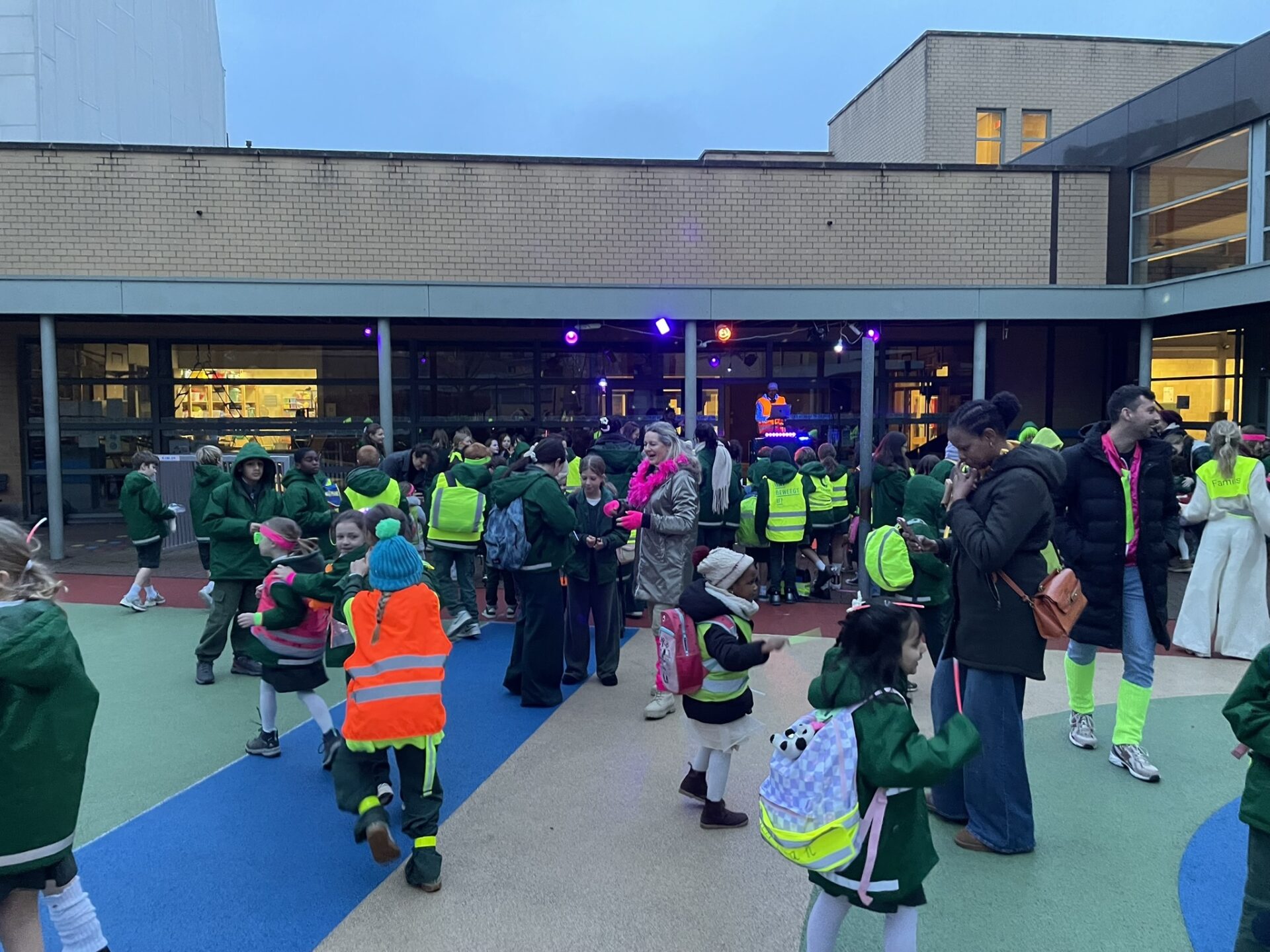 Onze speelplaats kleurde vandaag fel tijdens de fluo-fuif, georganiseerd door de ouderraad in samenwerking met onze brugfiguur. Leerlingen en ouders kwamen enthousiast verkleed met fluo accessoires en werden aan de schoolpoort verwelkomd door indrukwekkende blacklights. Op de speelplaats zorgde een bekende dj voor een geweldige sfeer en dansplezier.